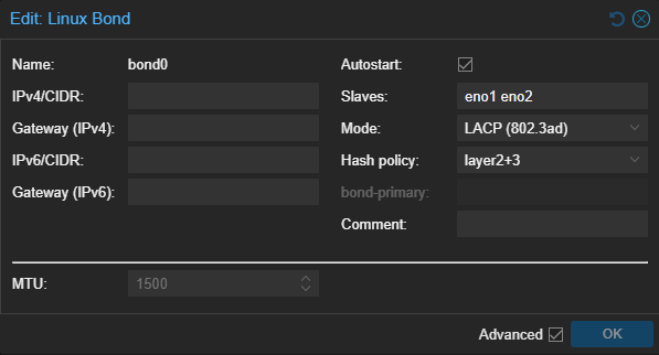 To use the bond LAG I created vlan0 and br0. vlan0 I assigned to VLAN 100 so my server subnet/VLAN can access it.